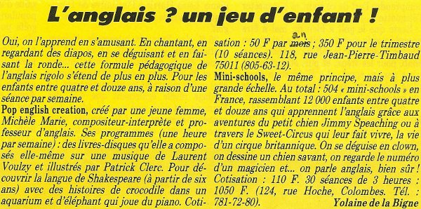 La voix des parents, septembre 1980