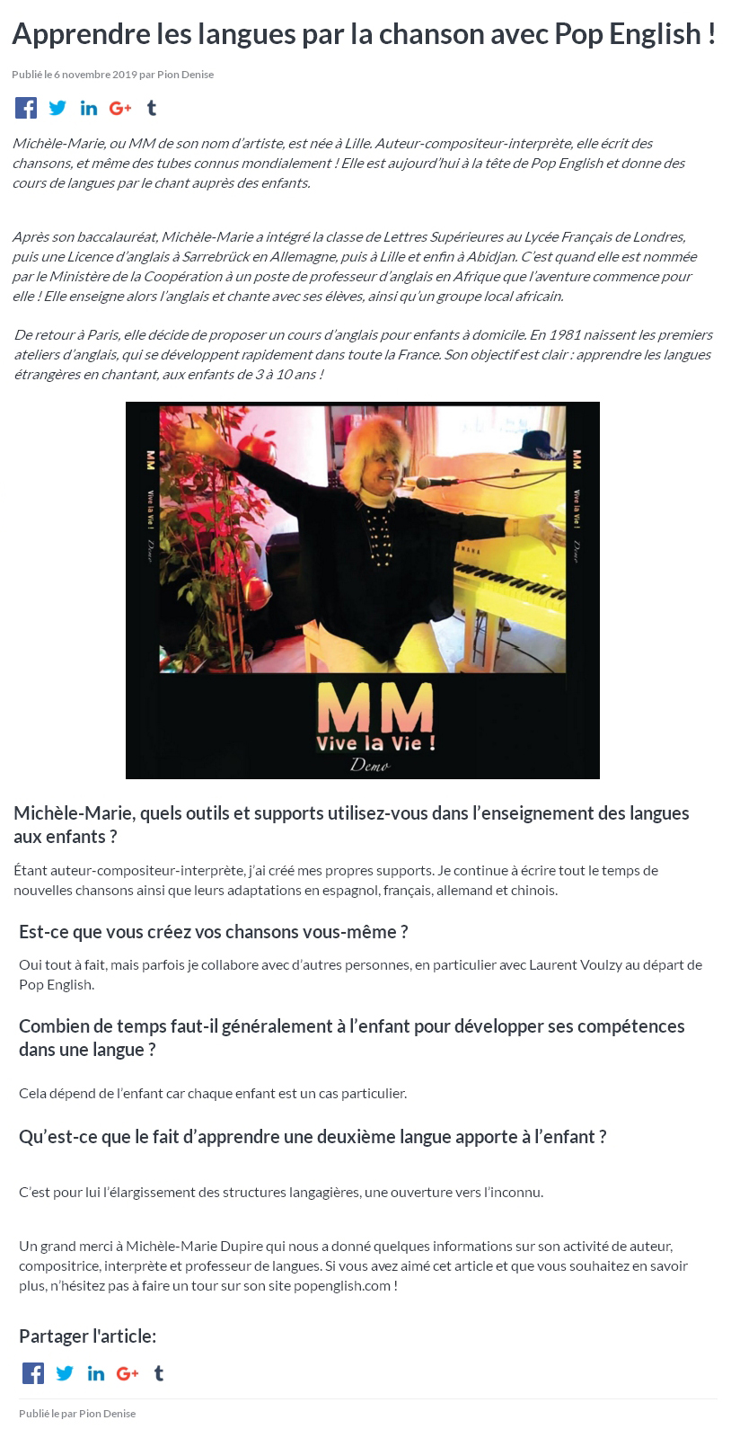 Reconnaissance internationale des méthodes de langues par Michèle-Marie (en anglais).